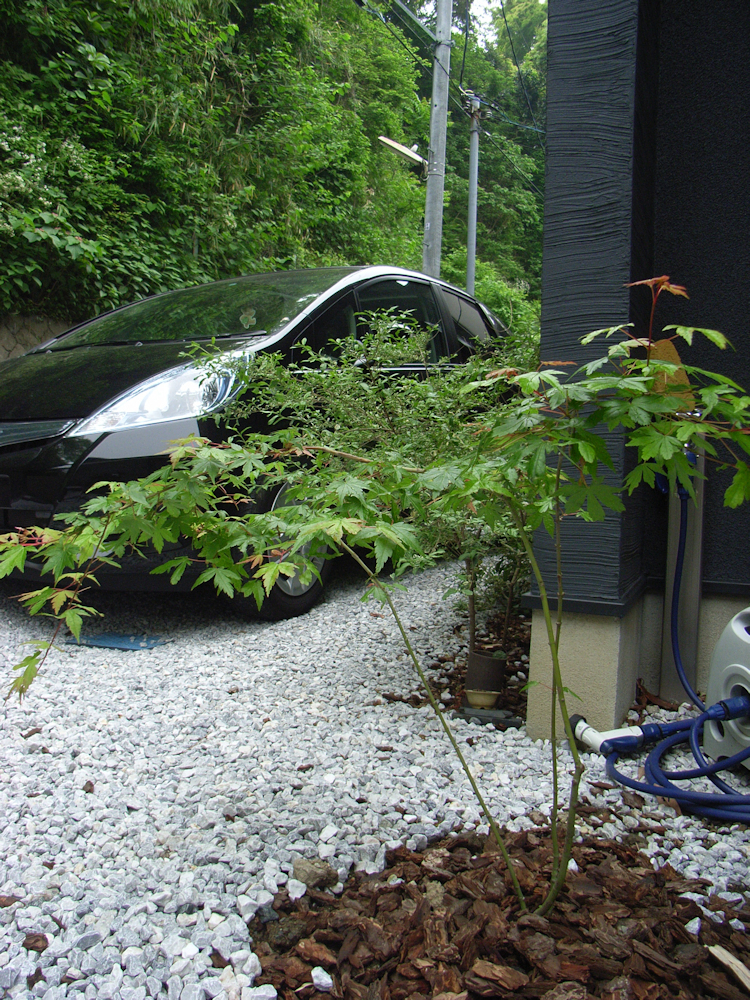 玄関タイルや外構工事はセルフビルド。