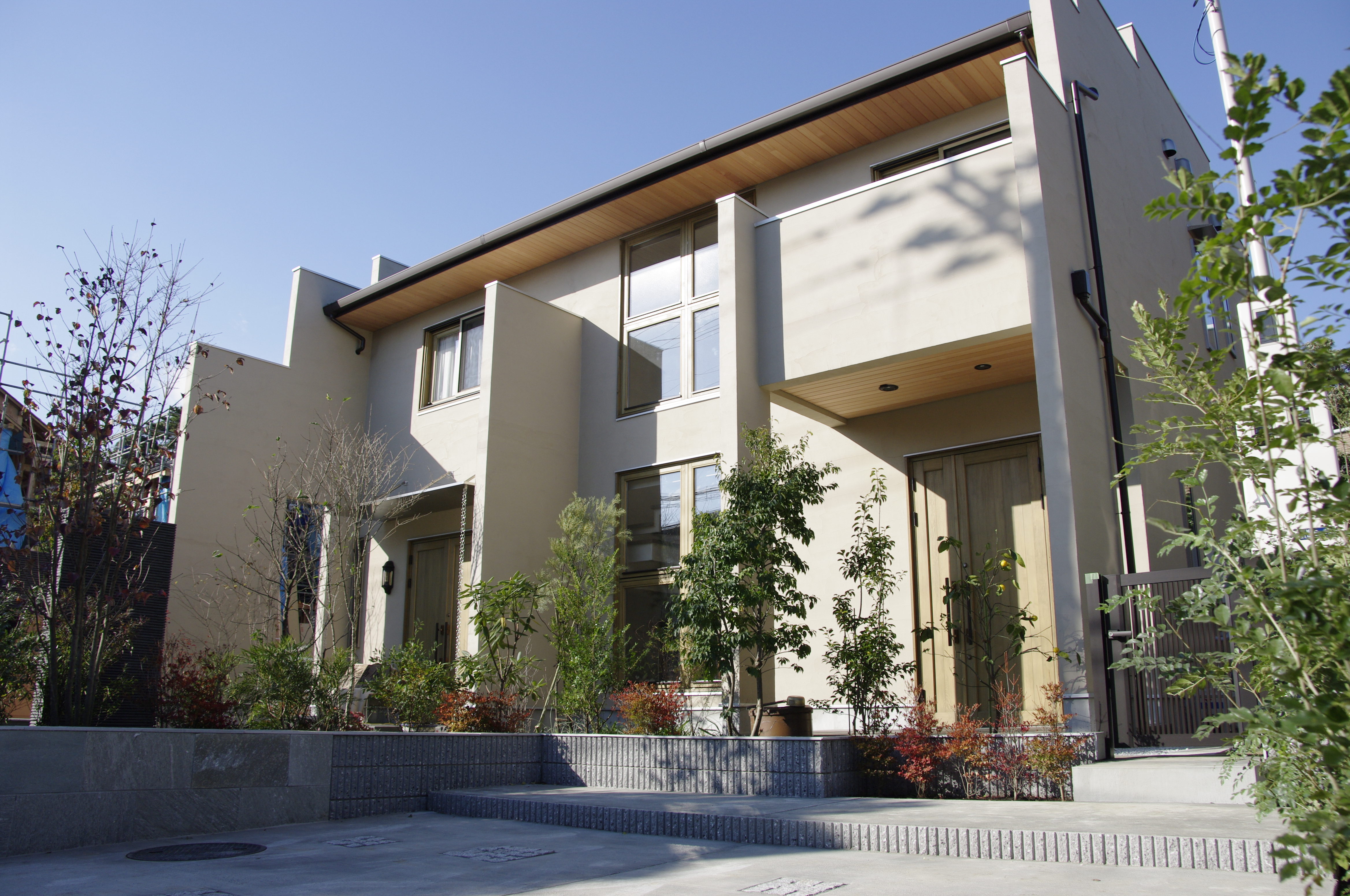 漆喰風の塗り壁外壁無垢の木と漆喰 自然素材の家
