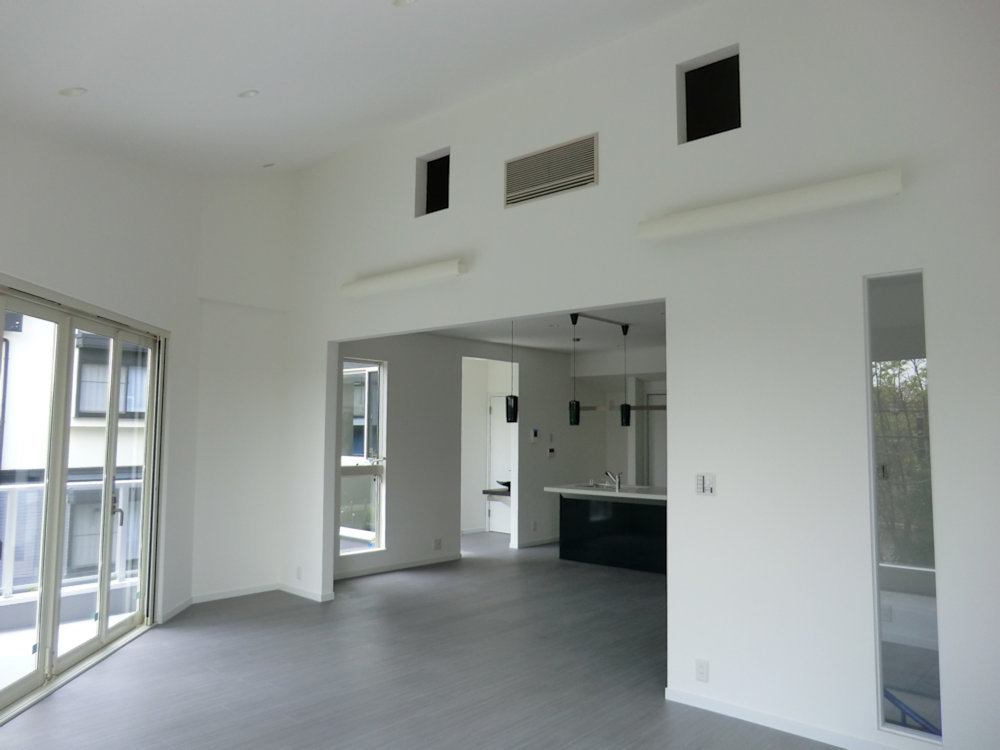 室内も グレーのフロアータイル と白い壁 シンプルな色調でまとめています。